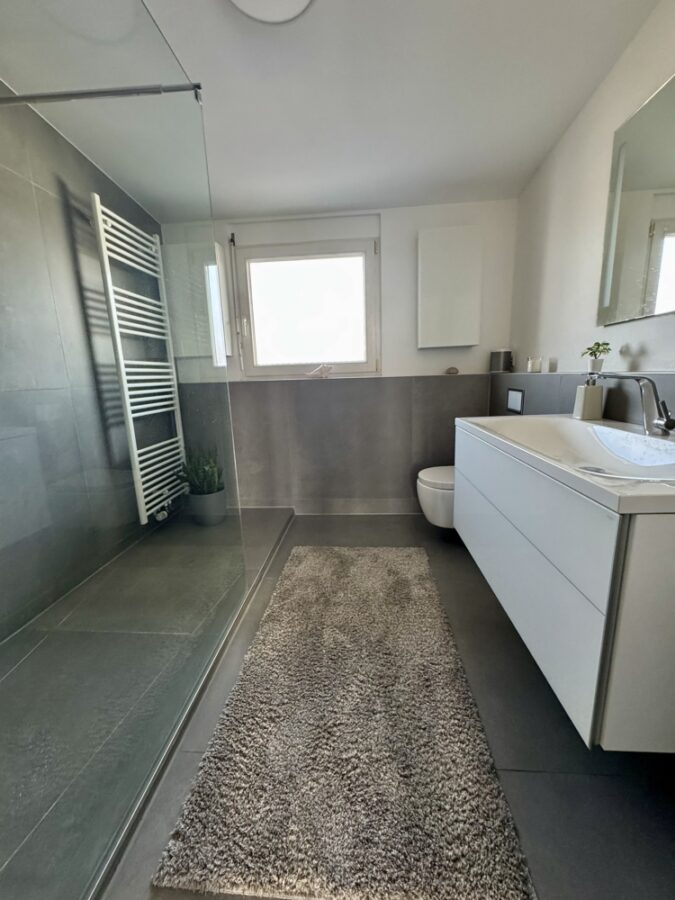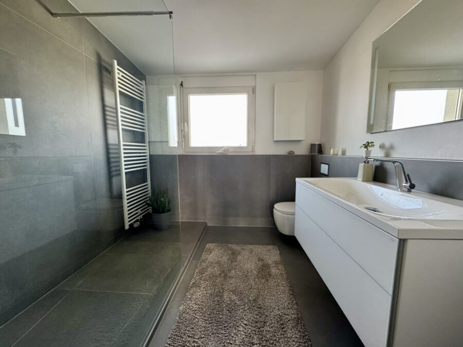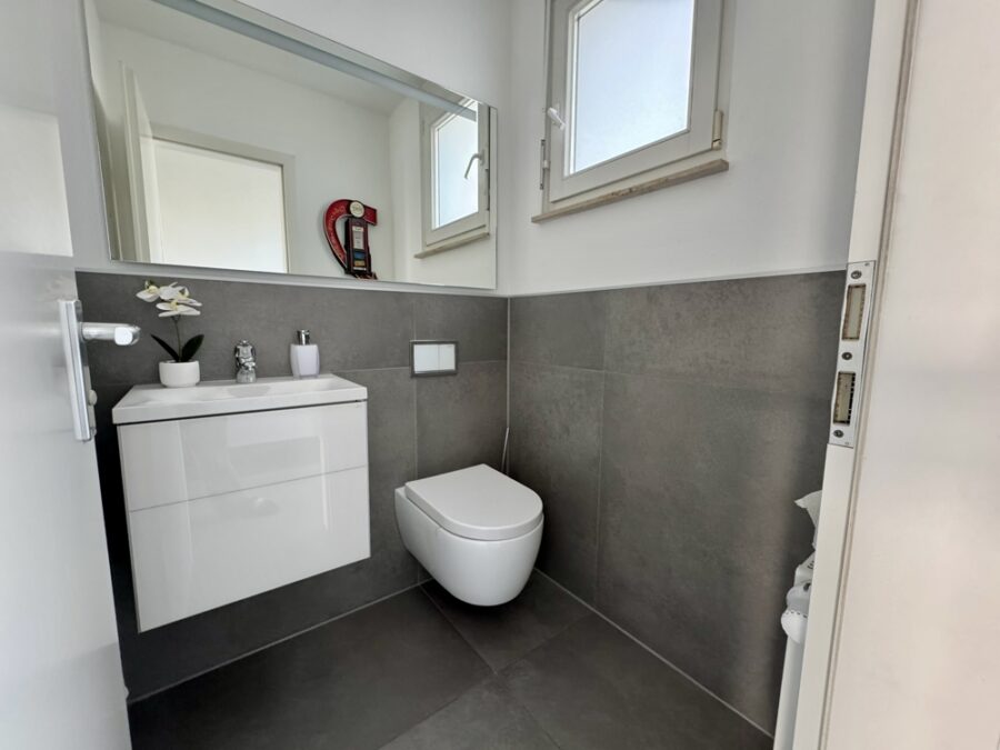 Modernes Tageslichtbad (beheizter Spiegel) und Gäste-WC mit gehobener Ausstattung (Keuco Möbel)