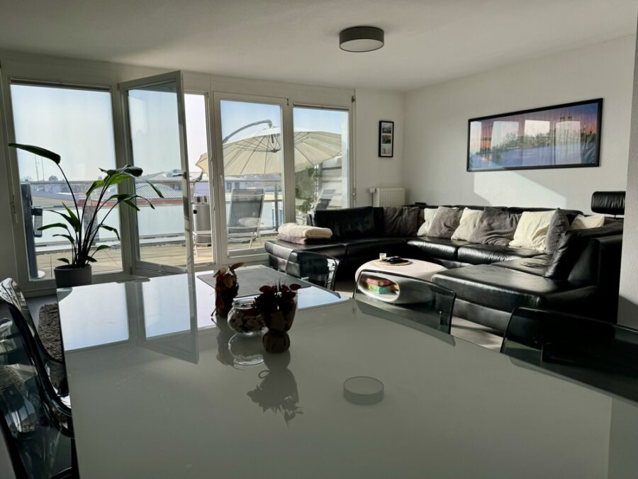 Diese außergewöhnliche Wohnung im 3. Obergeschoss verbindet das Flair eines Penthouses mit dem Komfort einer Maisonette und dem Gefühl eines eigenen Hauses: Über einen separaten Eingang über den Laubengang betreten Sie Ihre Wohnung – ganz wie in einem Reihenhaus.