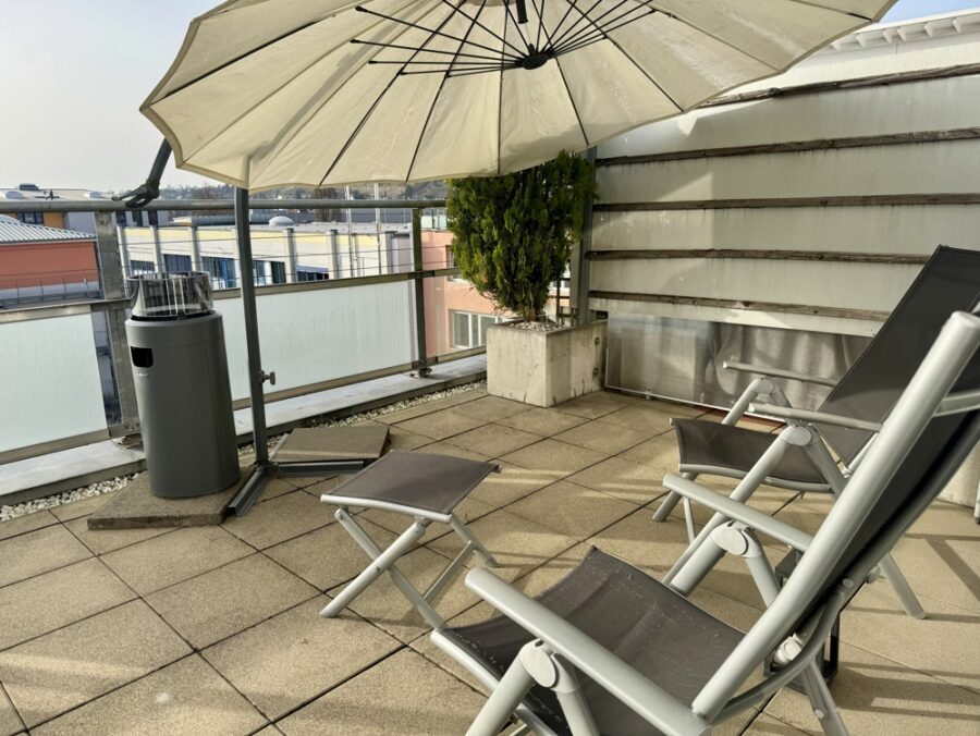 Dachterrasse in Südwest-Ausrichtung mit Sonne bis zum Abend